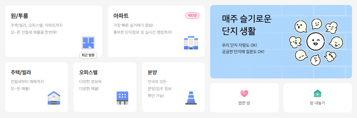 다방은 국내 최초의 오픈형 부동산 플랫폼으로, 원룸, 투룸, 오피스텔, 아파트 등 다양한 집을 손쉽게 검색할 수 있습니다. 이 앱은 주변 CCTV, 치안센터 등의 안전시설 여부도 확인할 수 있는 기능을 제공합니다. 또한, 전국의 분양 뉴스, 일정, 청약 가이드 등을 한눈에 확인할 수 있어, 분양 정보에 대한 포괄적인 정보를 제공합니다.